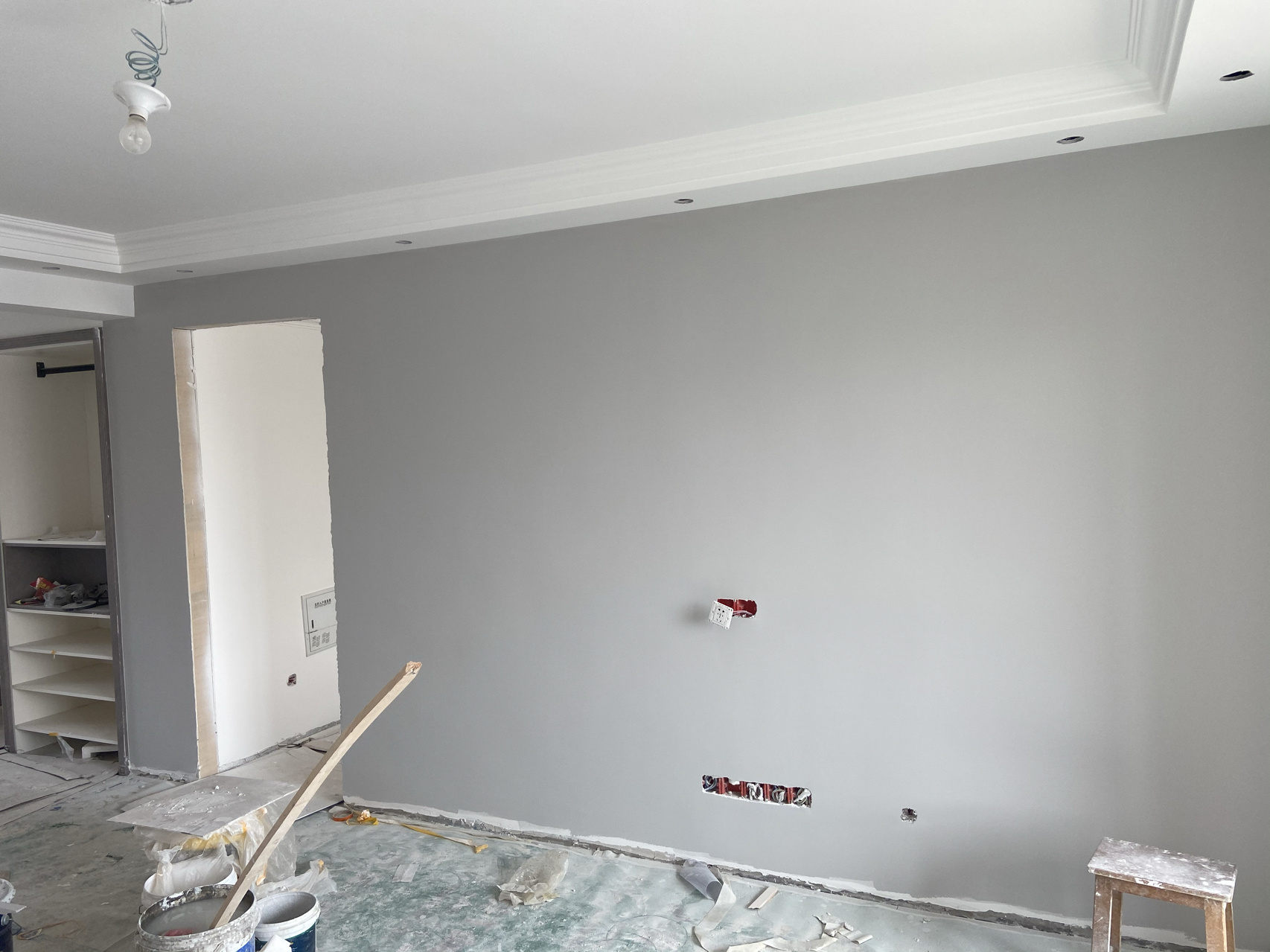 一开始怕颜色太深不好看选择了多乐士的网红浅灰色 ,家里采光太毫怂