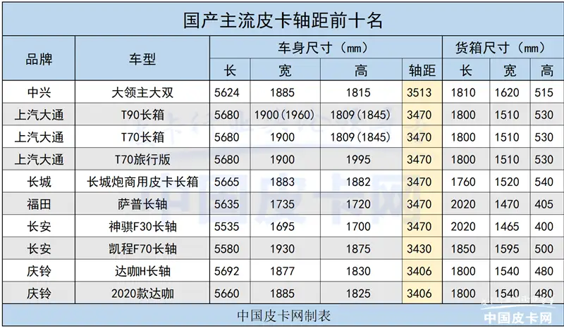 国产皮卡车身尺寸大盘点更宽更大更强