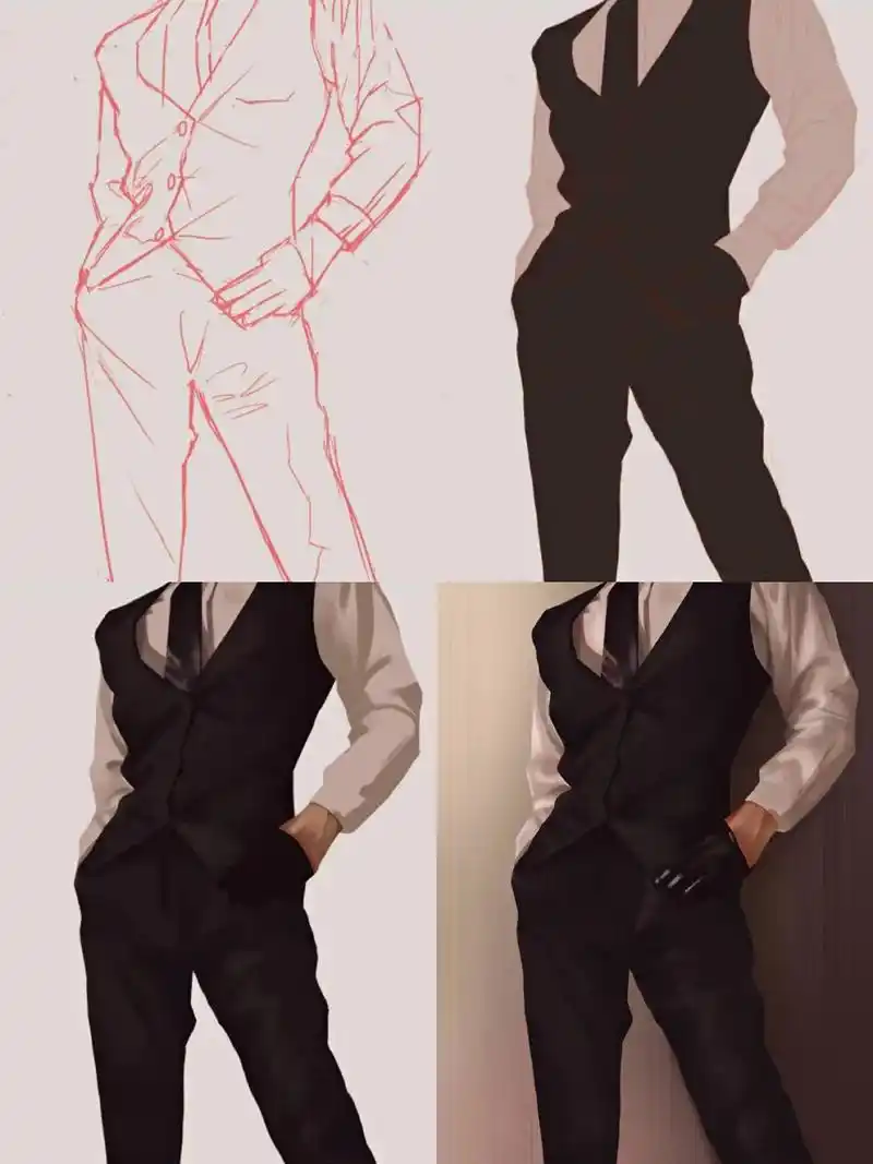 绘画教程#西装绘制 来自画师幸坊(pid=2383650)