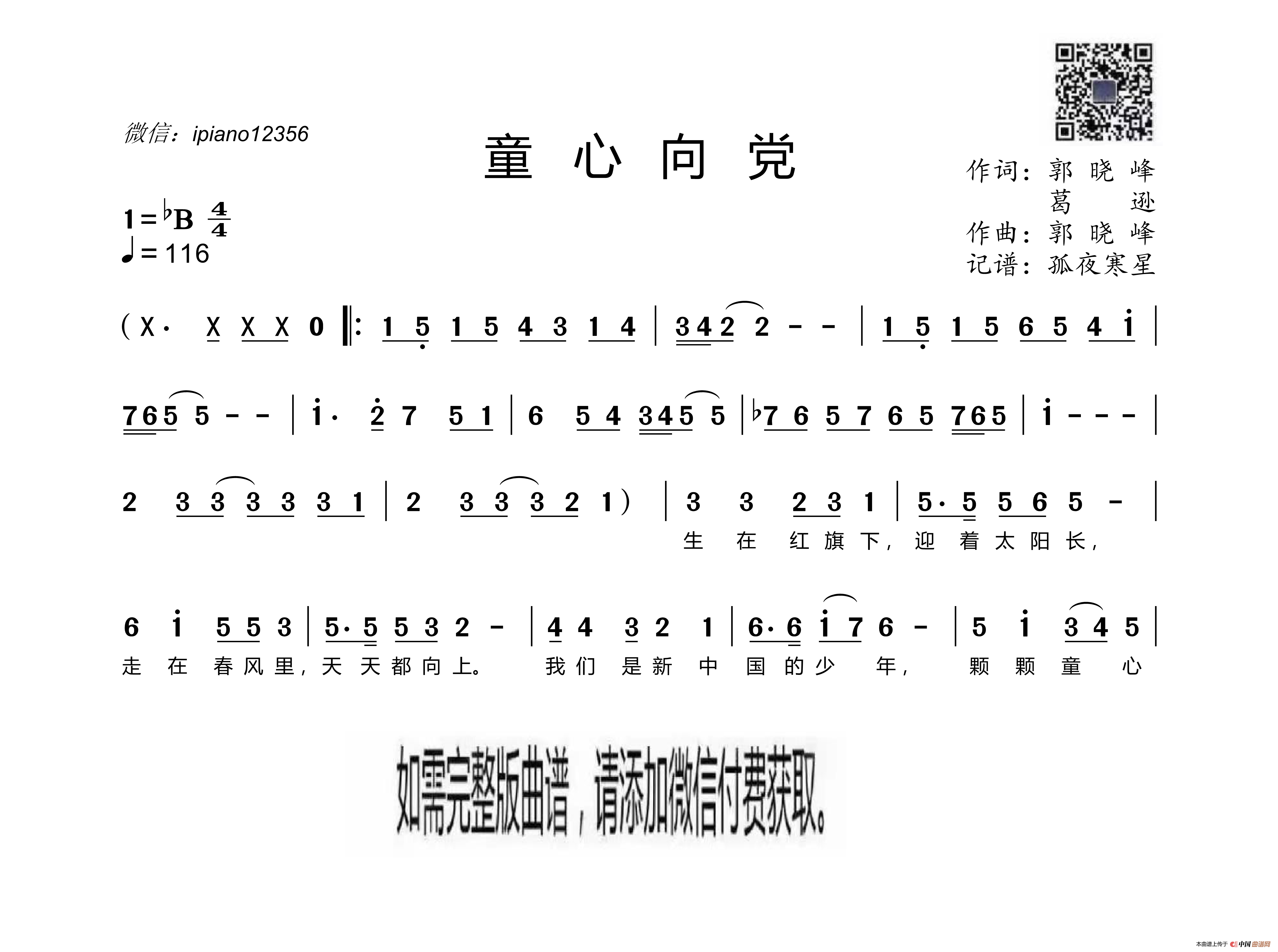 童心向党(王晓岭词 李葆春曲)简谱 - 曲谱歌词网