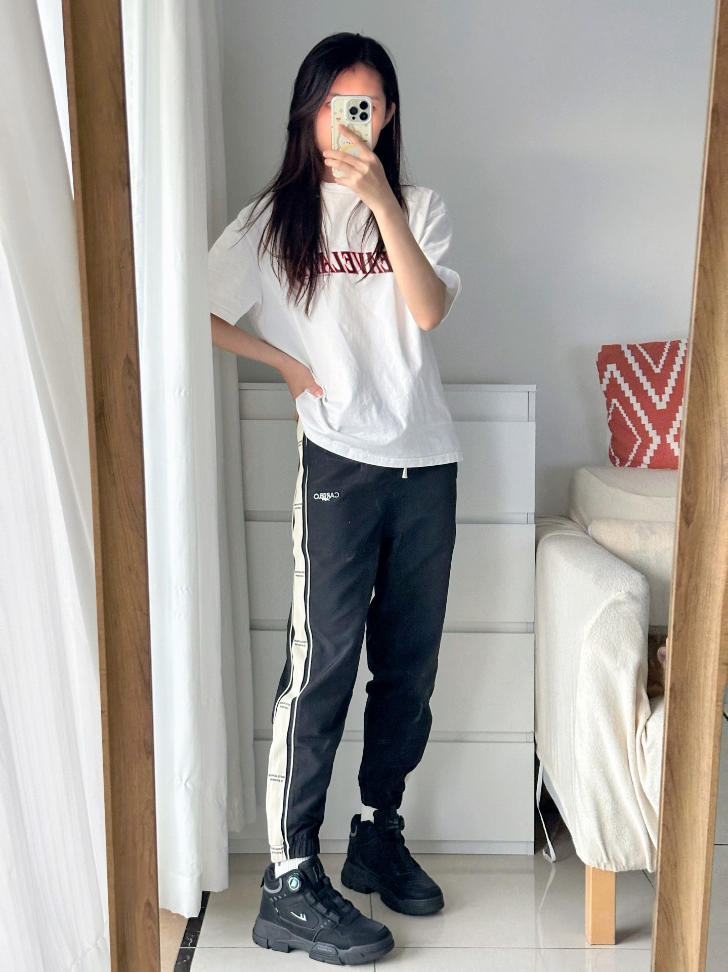 今日份夏日酷飒穿搭 白色印花t恤➕黑色束脚裤 搭配回力的马丁靴 好