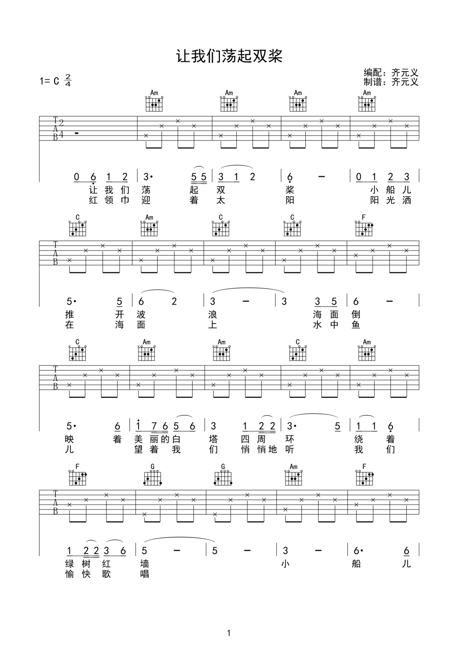 儿歌让我们荡起双桨吉他谱c调吉他弹唱谱