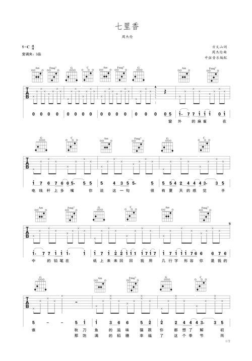 七里香吉他谱(图片谱,弹唱,扫弦)_周杰伦(jay chou)_七里香01.jpg