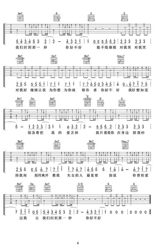 周兴哲《你好不好》吉他谱-g调指法吉他六线谱1