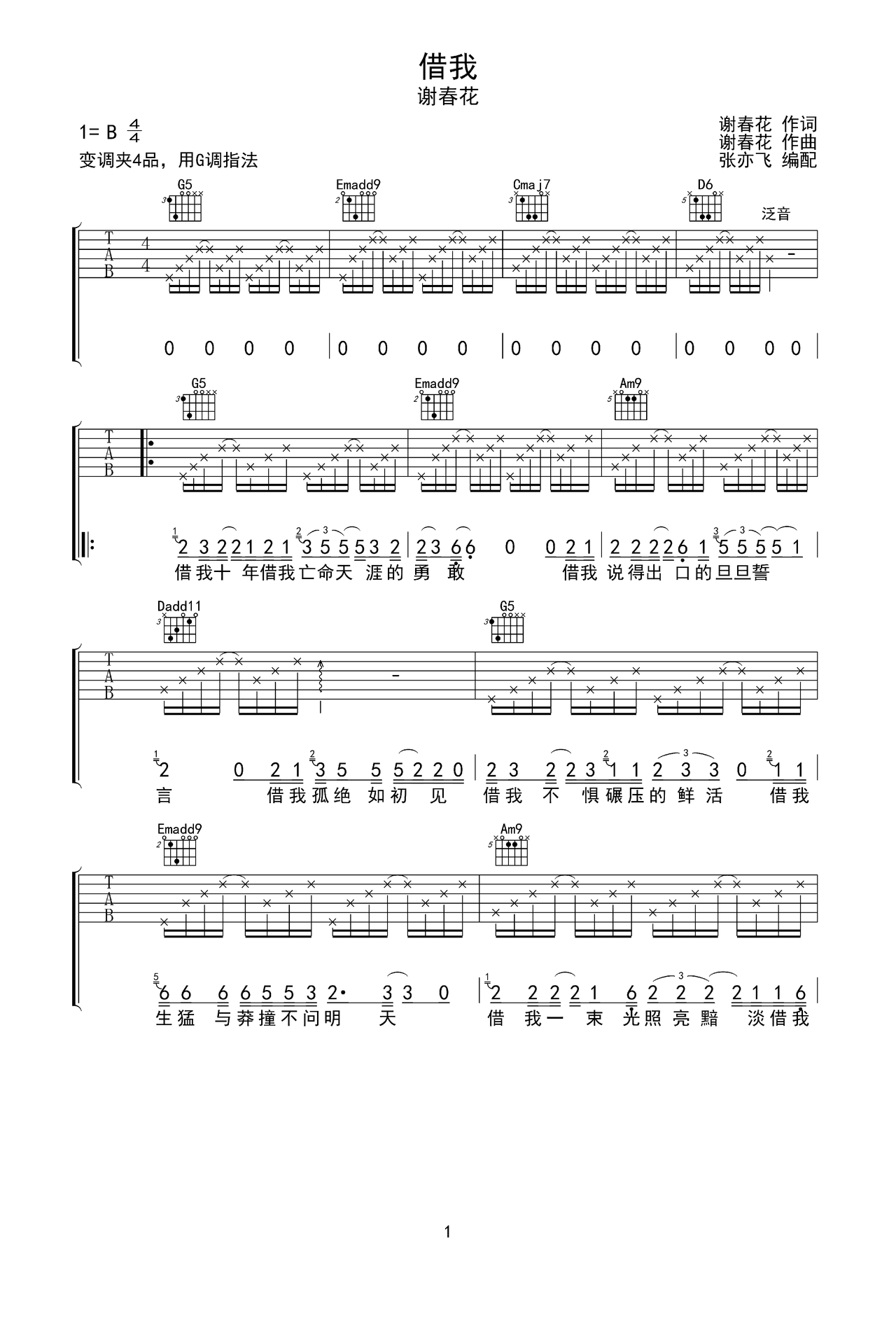 借我吉他谱(图片谱)_谢春花(春花姑娘)_借我02.gif
