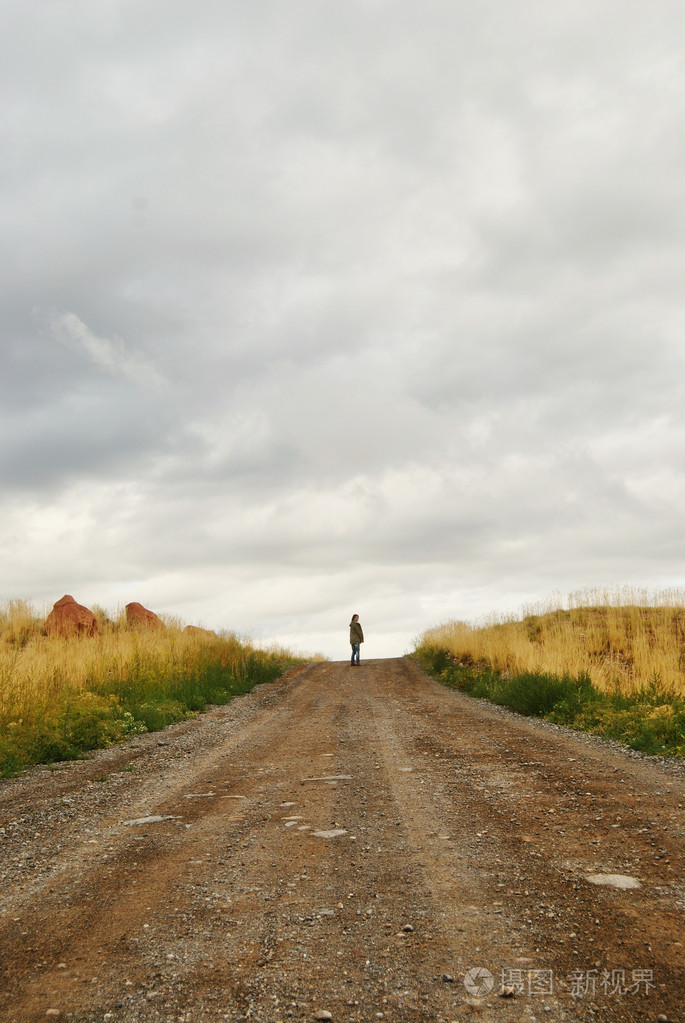 孤独的人站在很远的路上