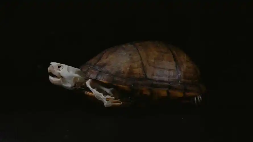 这是一个海龟标本,这个海龟标本近两米长,为1.