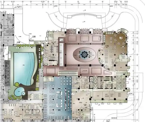酒店设计中一层大厅的布置图 相关专题:五星级酒店平面布置图 涡星