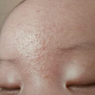 亲们,宝宝两个多月,额头上长满了针尖状的疙瘩,毛