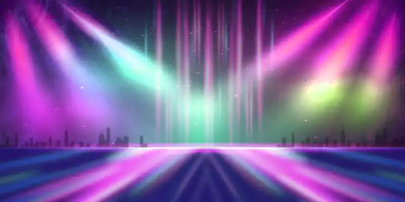 彩色简约灯光烟雾城市舞台展板背景演出夜生活人群热闹激动音乐节蹦迪