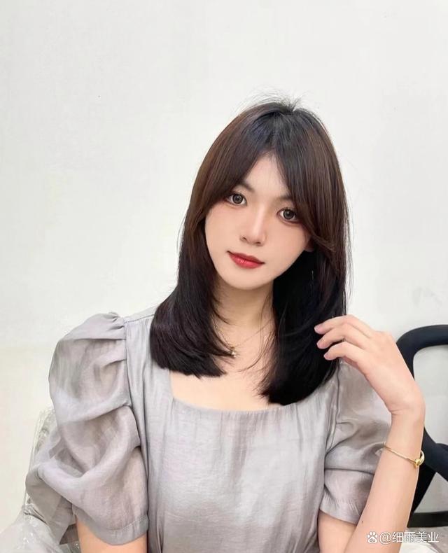潮流时尚锁骨发中长款2022中国风|||中长发(发型层次裁剪)法式小刘海