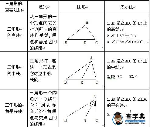 理解三角形的高,中线和角平分线的概念,掌握它们的性质. 4.