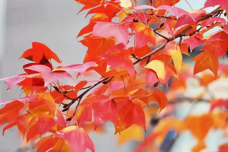 小区门前,三两株三角枫,枫叶红了,醉了秋又醉了冬