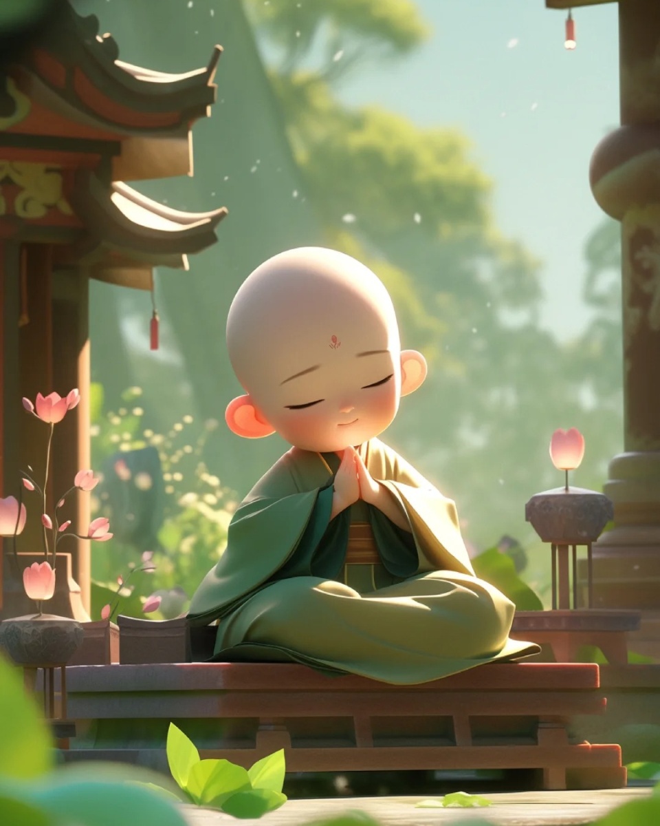小和尚图片 禅意 可爱 0069♂ 清晨的钟声悠扬响起,伴随着微风和