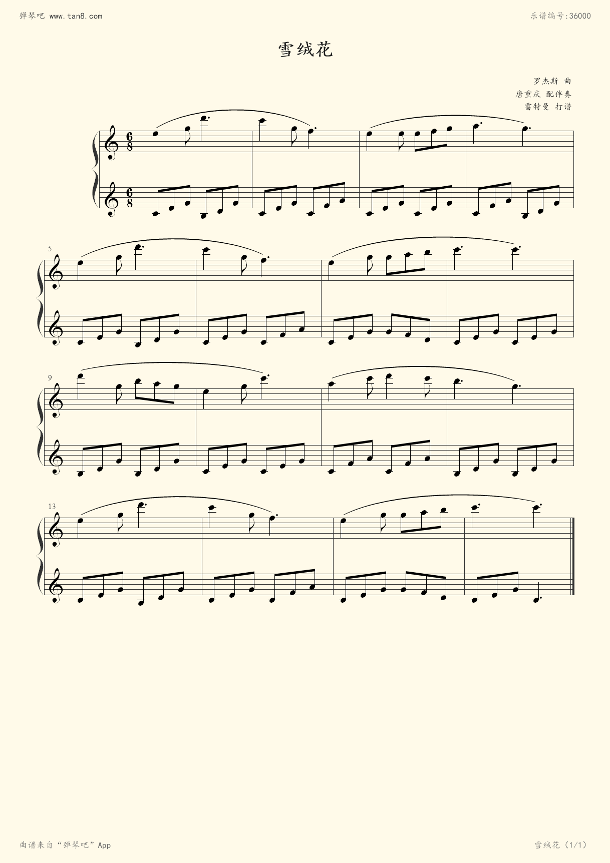 钢琴谱:雪绒花(给初学者编配的最简易版)