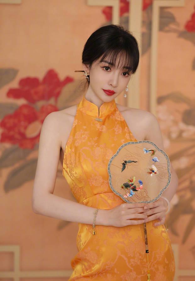 柳岩演绎古风旗袍让人眼前一亮,肤色白穿橘色系衬托得气质特别高贵