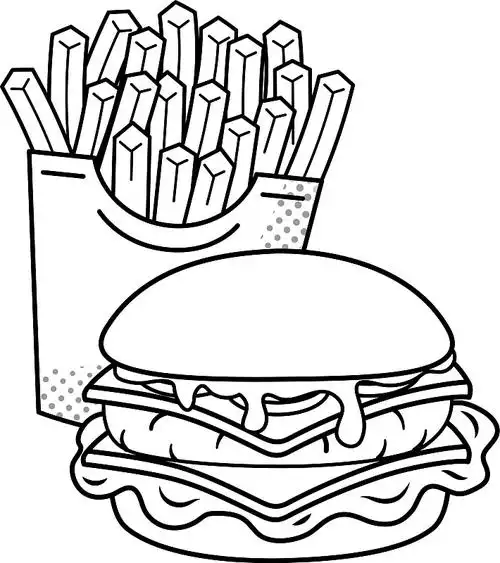 汉堡可乐薯条怎么画美味好看 涂色汉堡薯条简笔画图片