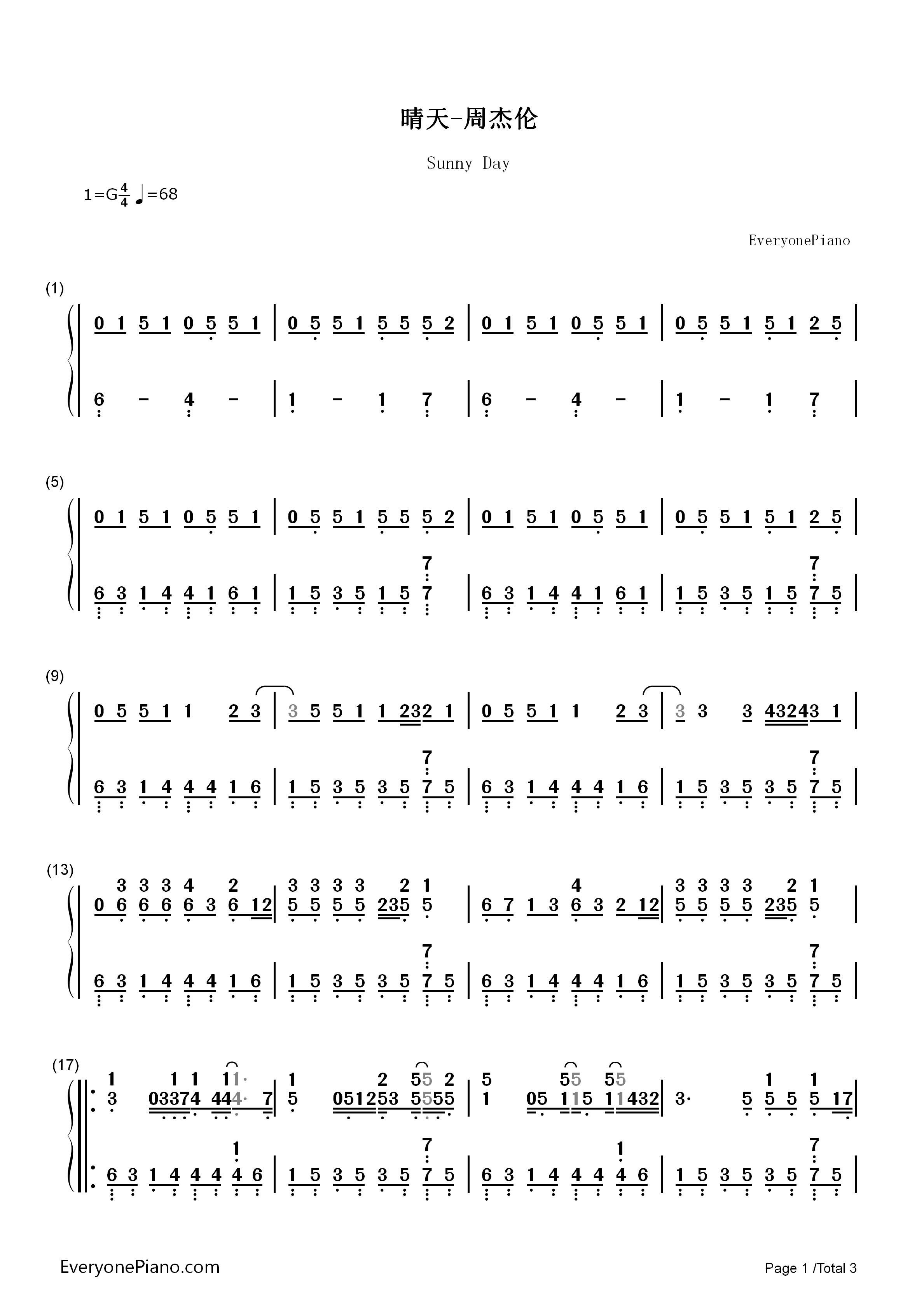 求周杰伦《晴天》最难,最完整的钢琴谱