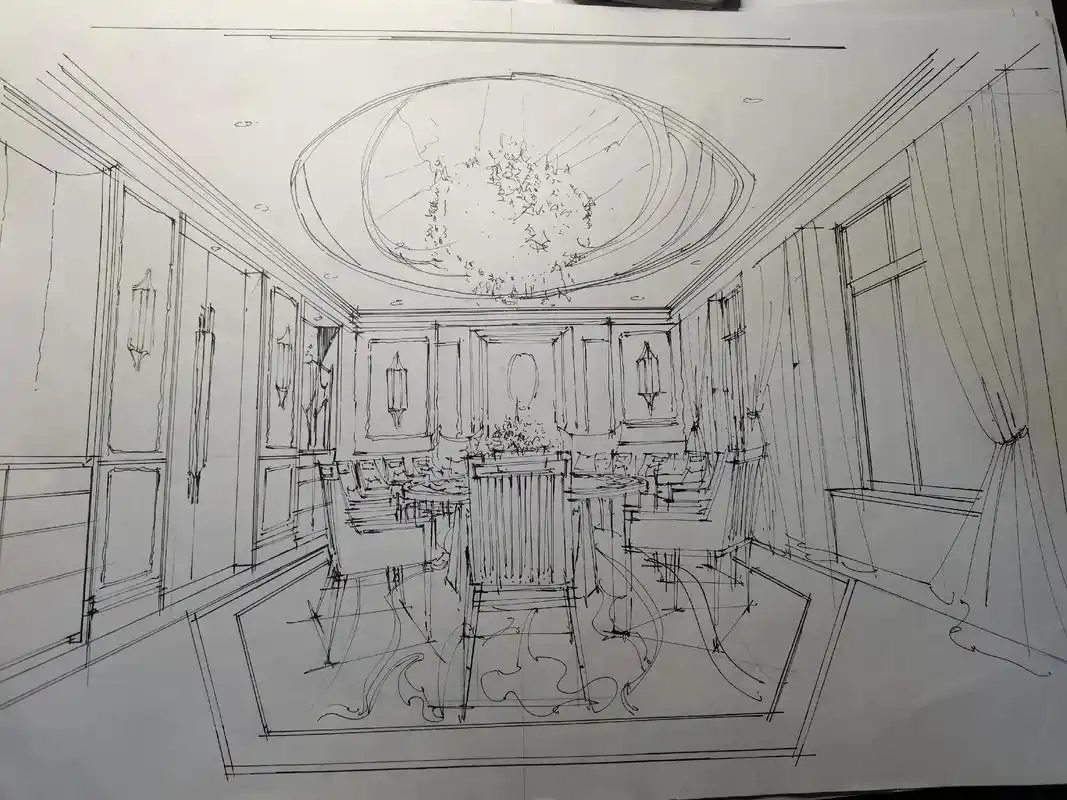 室内手绘线稿表现|空间|家装设计|艺景考研设计教育 - 原创作品