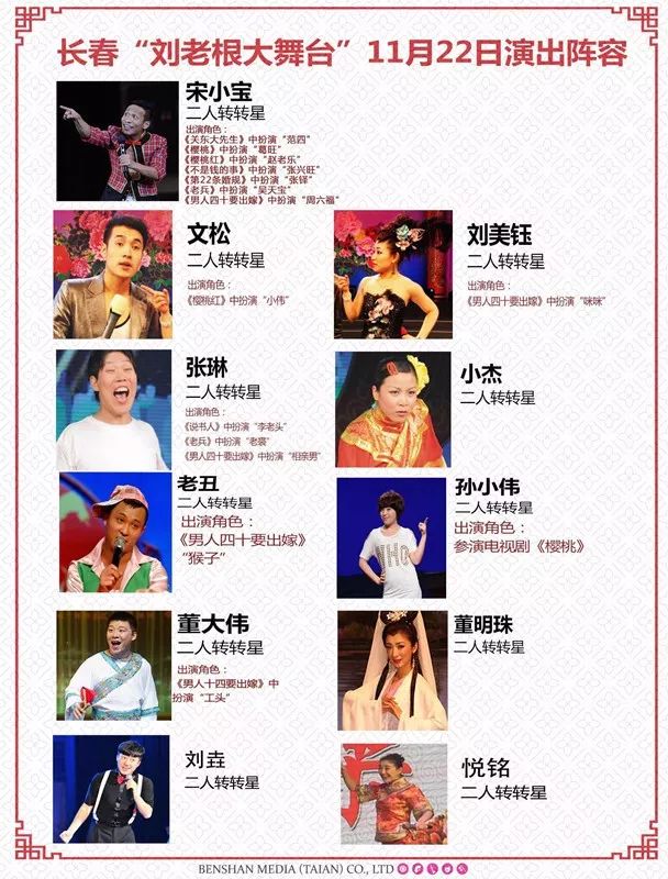 演员名单(当天演员具体以刘老根大舞台现场为准):更多演出阵容请随时