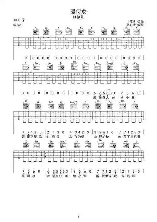 爱何求吉他谱_红孩儿_g调六线谱_《爱何求》吉他弹唱谱1