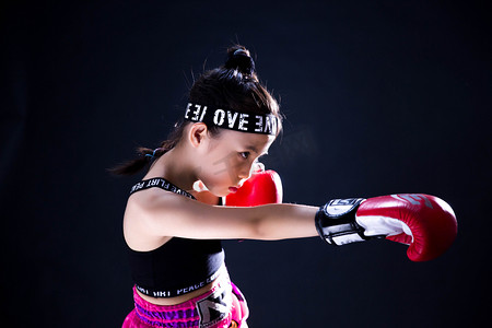 健身搏击摄影照片_拳击运动健身少儿搏击格斗摄影图配图