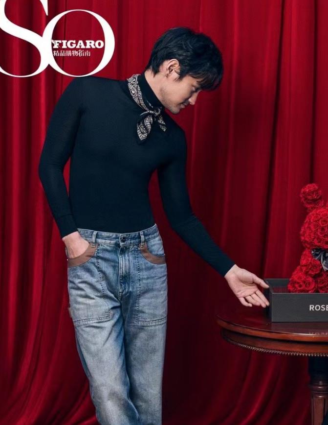 一身白衬衣,黑西装的袁弘帅气挺拔,考究的西装剪裁突显了身材线条的
