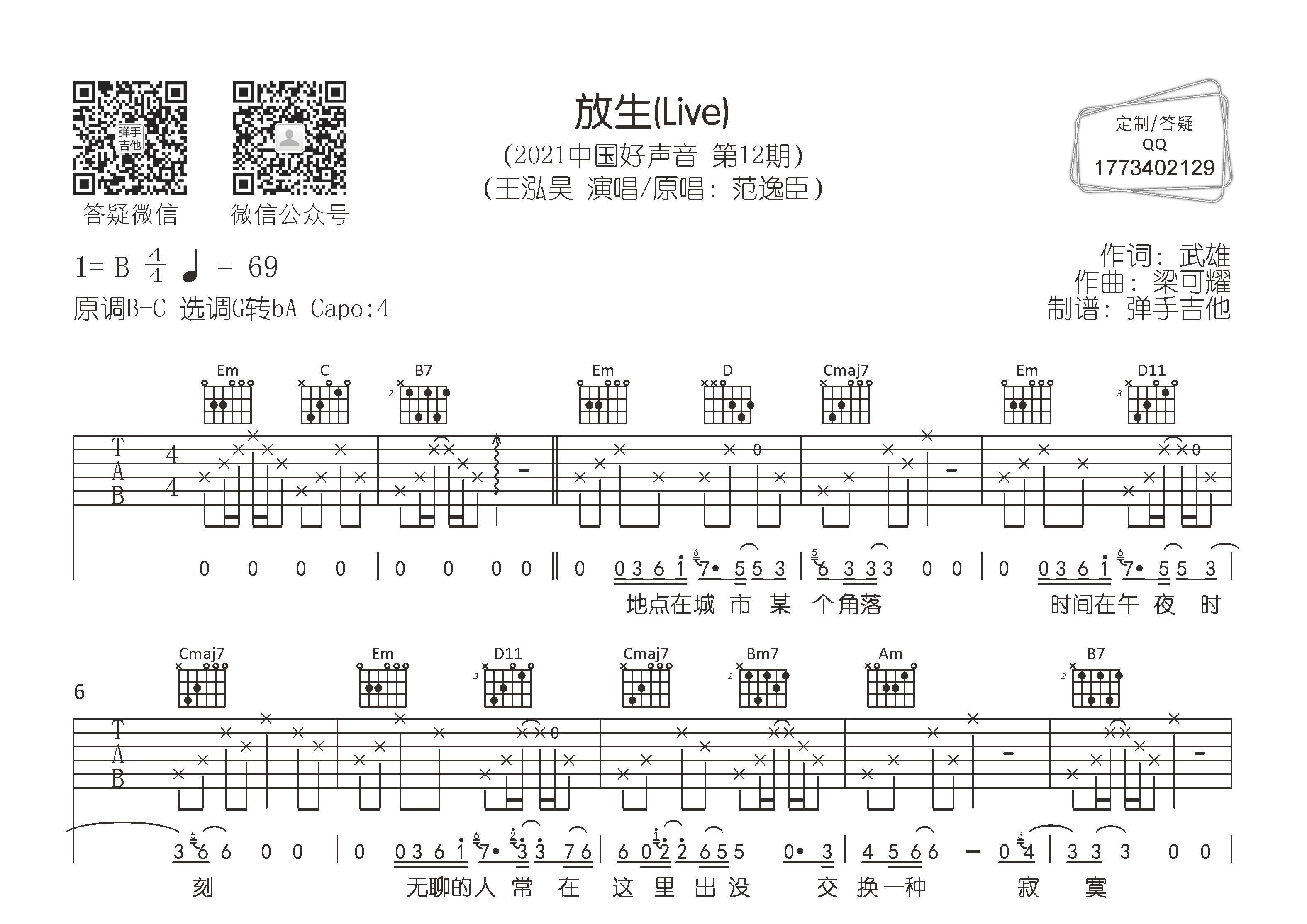 放生 吉他谱 和弦谱,五线谱