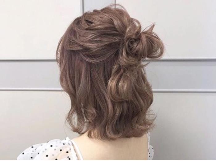女生齐肩发半扎