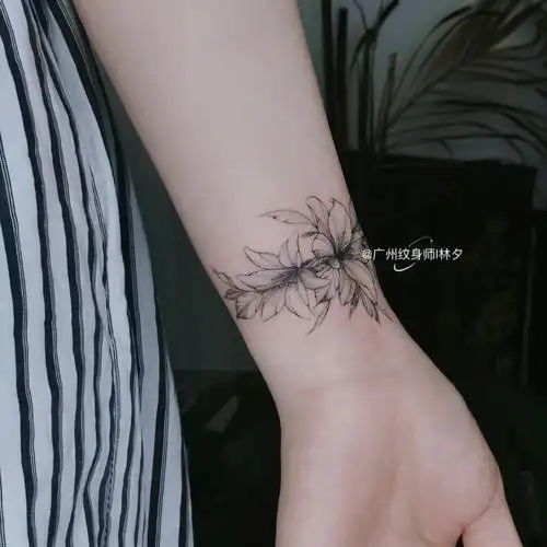 百合素花纹身遮盖手腕伤疤