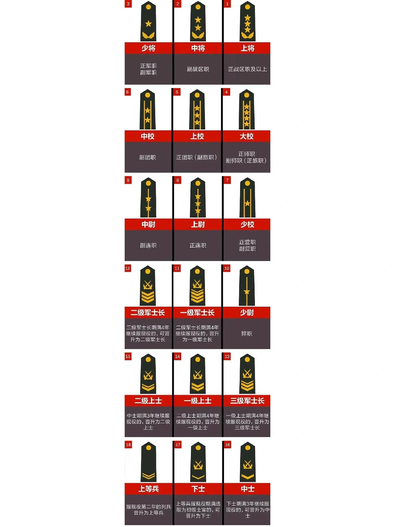 部队级别排名顺序,军衔等级排名从小到大的顺序是什么(你了解我军士兵