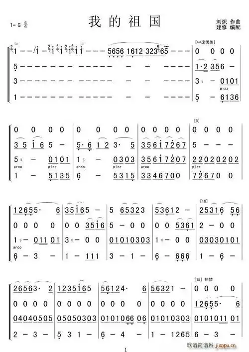 《我的祖国(管弦乐合奏)》刘炽作曲 ,原创总谱合奏,器乐,国语歌曲谱