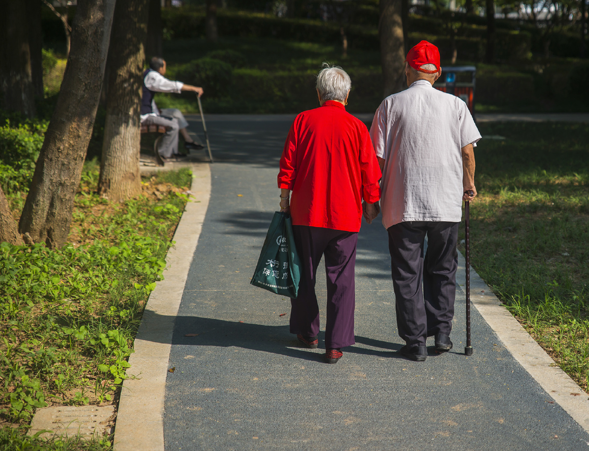 2017年9月17日摄于江苏省高淳,公园里,两位老人牵手而来