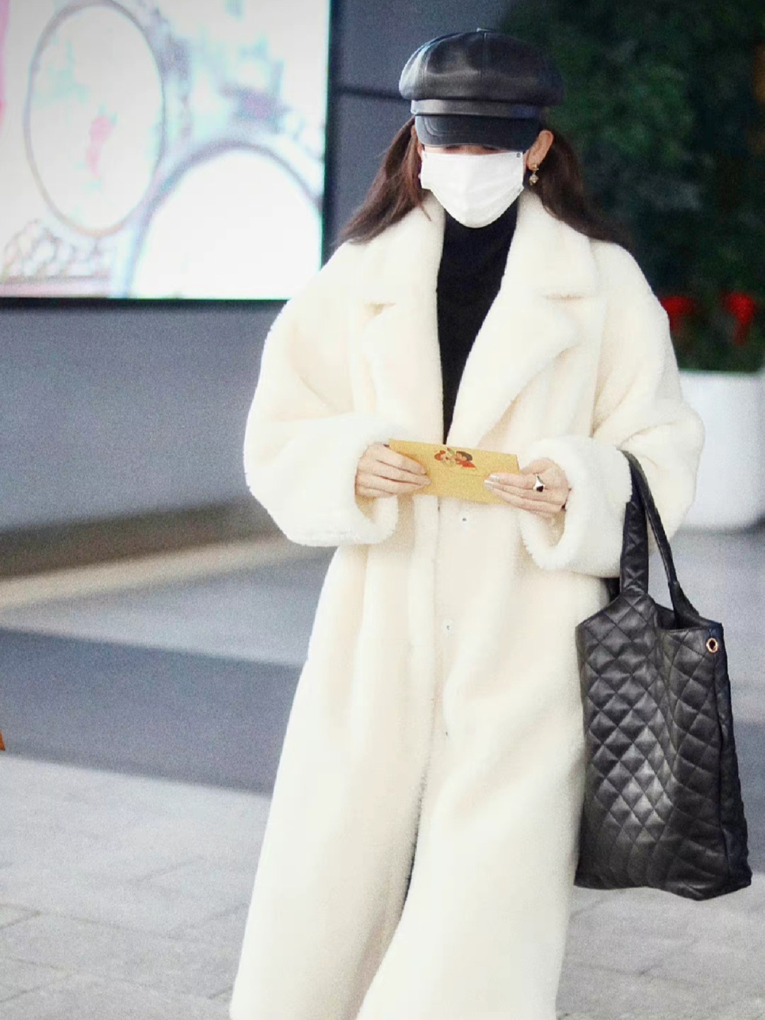 娜扎今日私服,保暖舒适的冬日穿搭 古力娜扎221229机场私服,白色毛绒