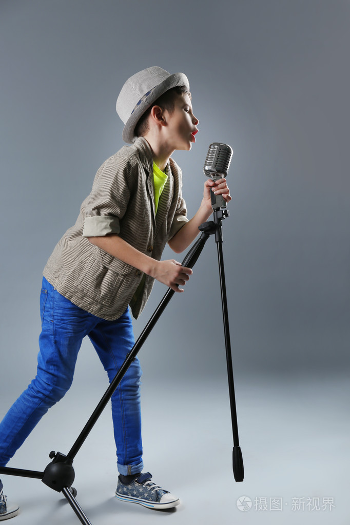 小男孩用麦克风唱歌照片-正版商用图片0e8auj-摄图新视界