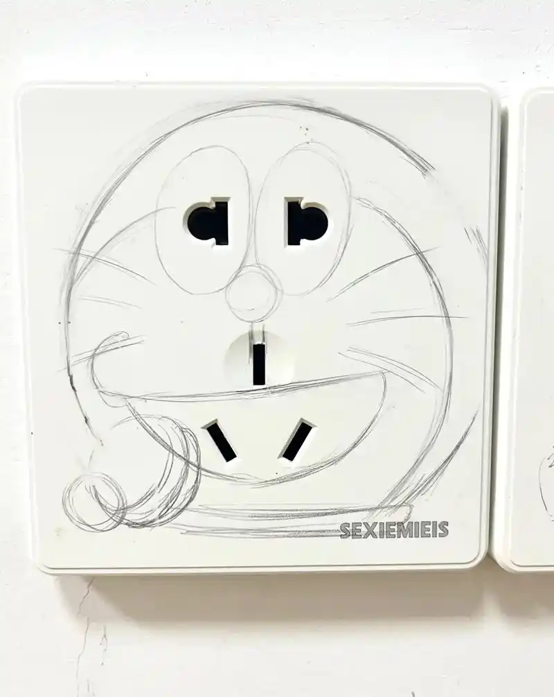 多啦a梦插座.下课又涂一只~果然还是红黄蓝经典#画画 #手绘 - 抖音