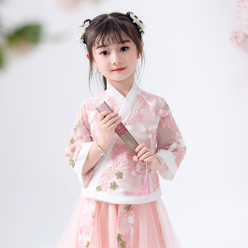 演出服儿童中式服装12岁女孩唐装春秋薄款高端中国风超仙可爱汉服套装
