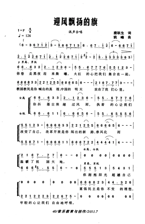 迎风飘扬的旗歌谱二声部