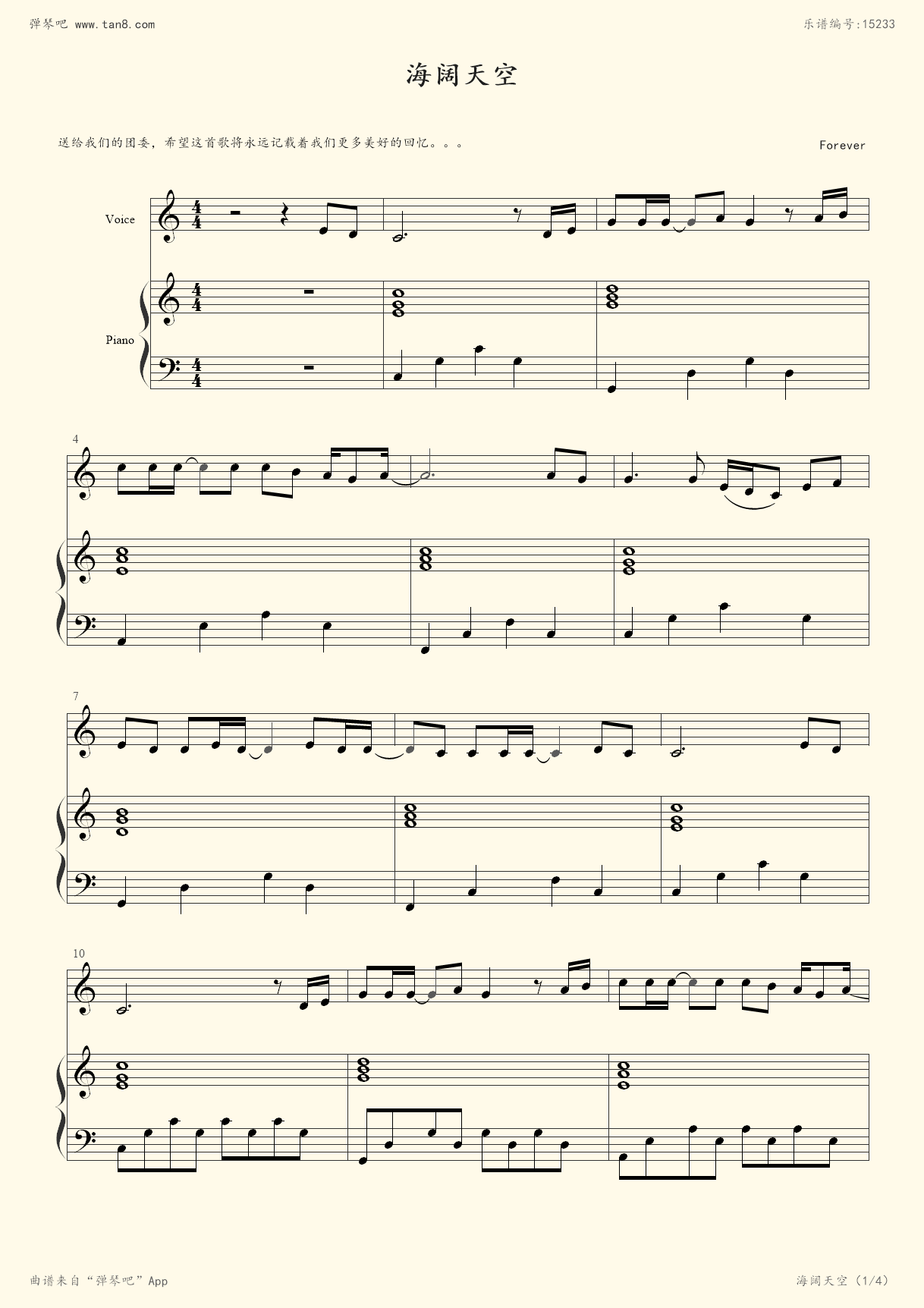海阔天空五线谱预览1-钢琴谱文件(五线谱,双手简谱,数字谱,midi,pdf)