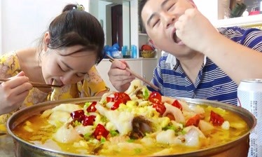 超小厨美食买块豆腐条鱼酸菜豆花鱼煮一锅一碗饭一瓶酒