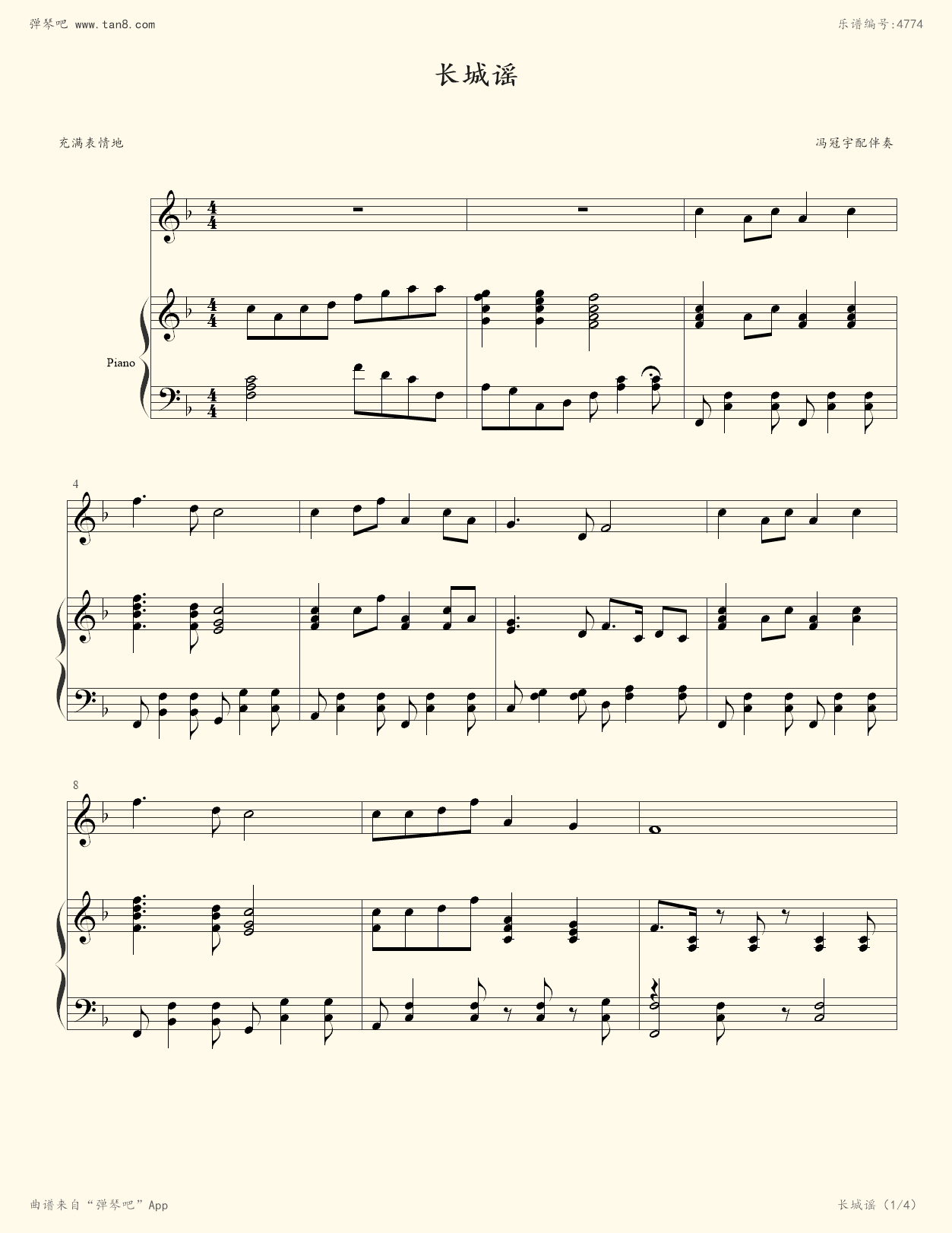 长城谣钢琴谱-woaizuoqu-虫虫钢琴