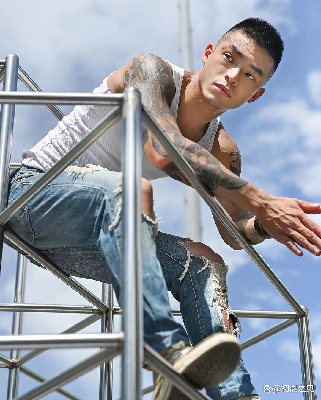 痞帅的圆寸肌肉男,拍摄写真超有范,好身材果然加分,真的爱了