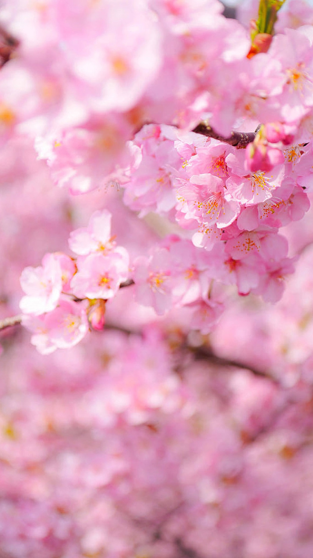 春天,粉红色的桃花盛开,朦胧 iphone 壁纸