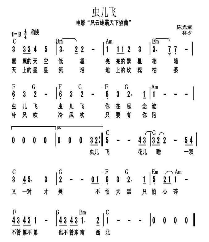 虫儿飞 (歌曲主旋律简谱) 谱友园地