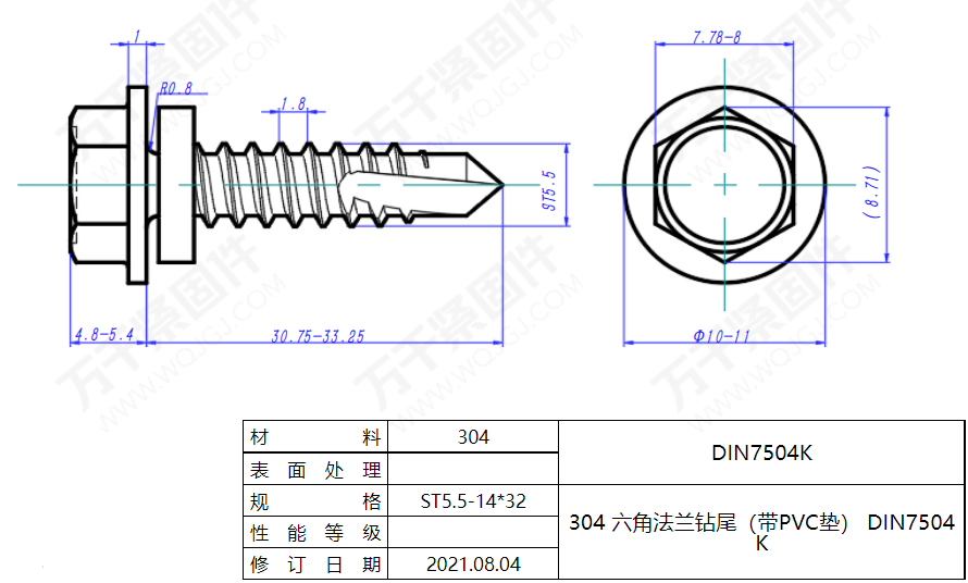 带pvc垫的六角法兰钻尾螺丝,304不锈钢的,德标din7504k,规格st5