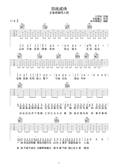 百战成诗吉他谱
