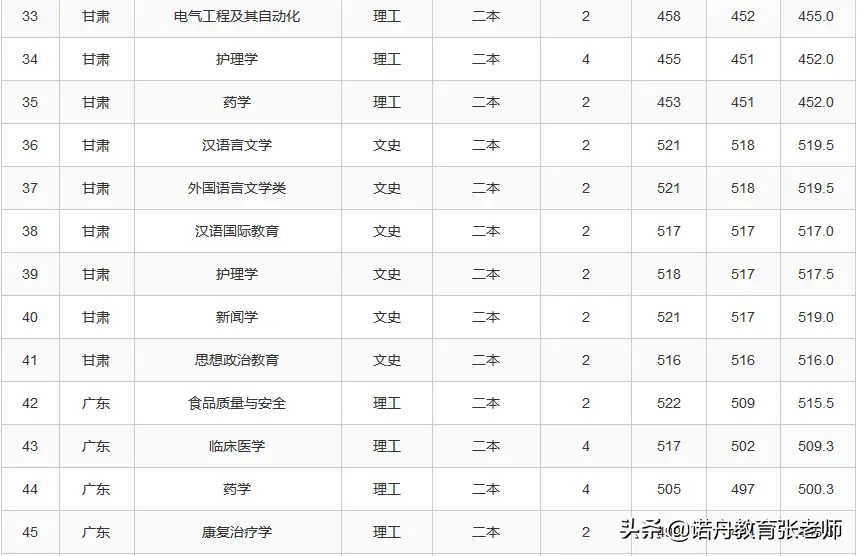 2,大理大学各专业往年录取分数线