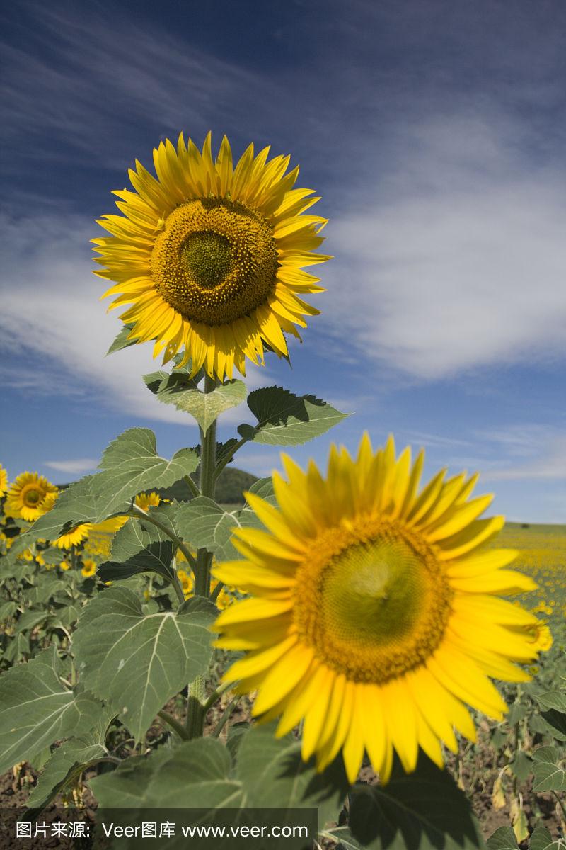 向日葵,两个葵花,原野