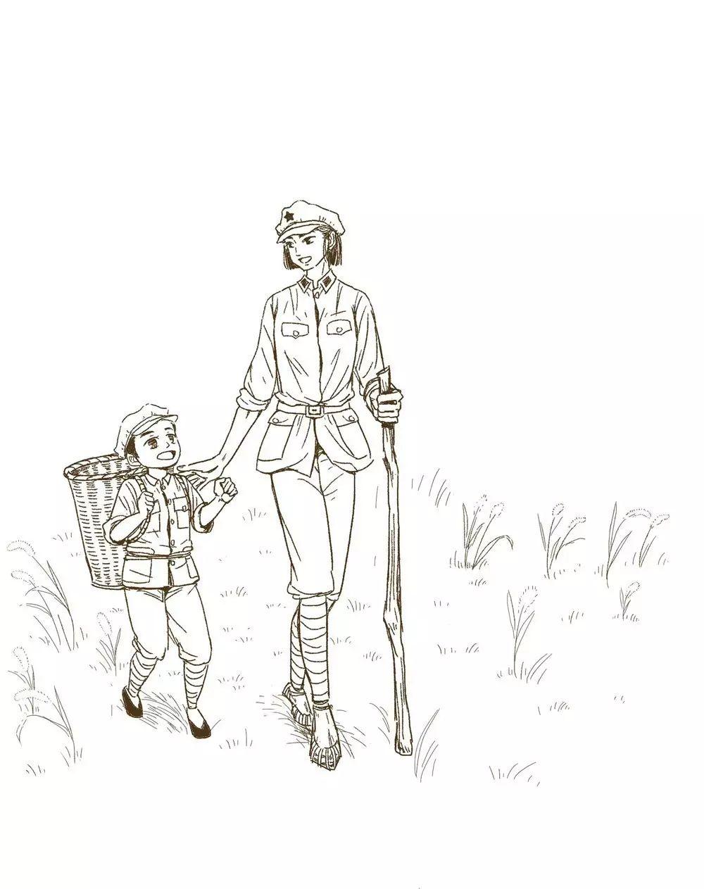 红军简笔画 背影