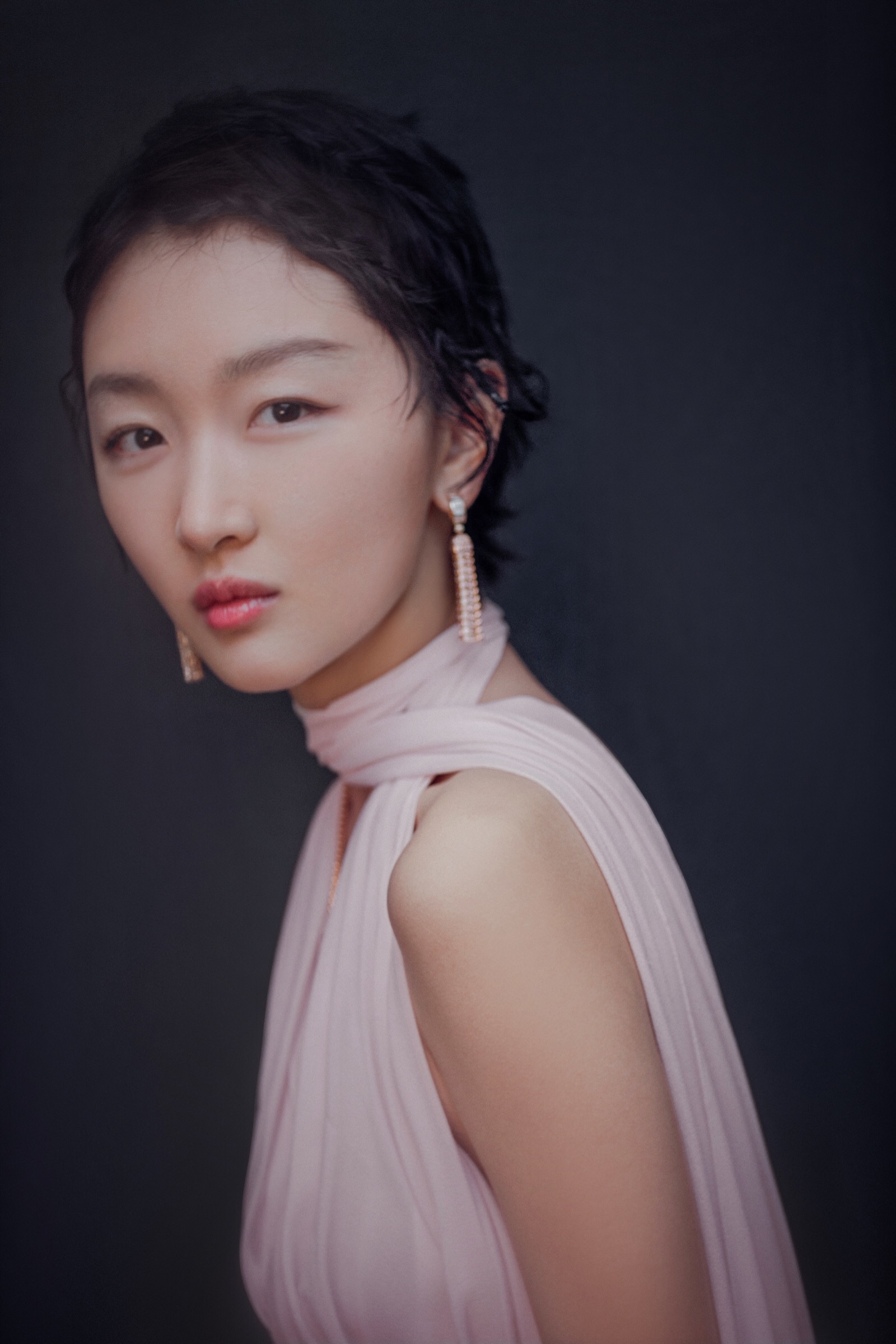 周冬雨穿冰蓝色蝴蝶抹胸裙美丽端庄 戴高级珠宝亮相华丽又优雅